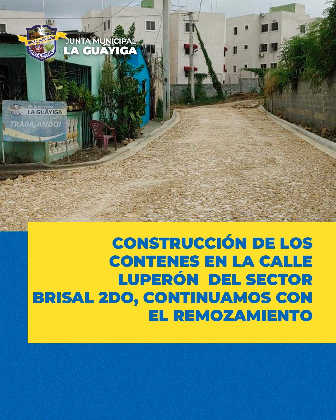 Luego de concluir la construcción de los contenes en la calle Luperón del sector Brisal 2do, continuamos con el remozamiento de la calle preparando las vías para que nuestros moradores puedan transitar y caminar con mayor seguridad.