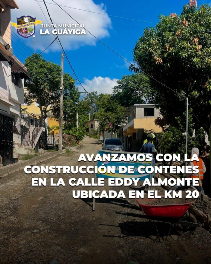 Avanzamos con la construcción de contenes en la calle Eddy Almonte, ubicada en el KM 20, como parte de nuestro compromiso de mejorar las vías públicas en los diferentes sectores de nuestra comunidad.