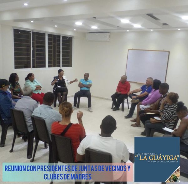La Directora de La Junta Municipal de La Guayiga Mirtha E. Pérez (La Popy) estuvo reunida con varios Presidentes de Juntas de Vecinos y Clubes de Madres; donde se estuvo analizando varios temas como lo son: El presupuesto participativo, las iluminarías, calles y varios temas más.